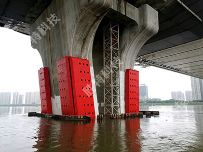 復合材料橋墩防撞裝置簡介該產品由衡水勝特科技有限公司研發制作生產,單元模塊化設計,外殼由優質柔性復合材料制作,內部則由耗能材料填充,是一種附著在大橋橋墩、承臺上的新型防護裝置。整套裝置消能耗能效果好,防...